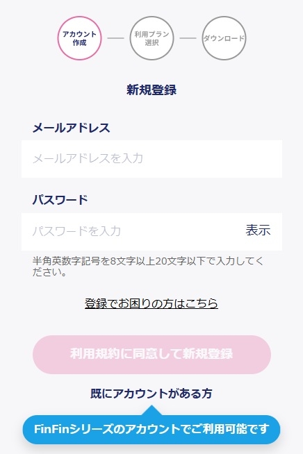まずは、スマホインボイス FinFinの公式ページから無料登録を行います。