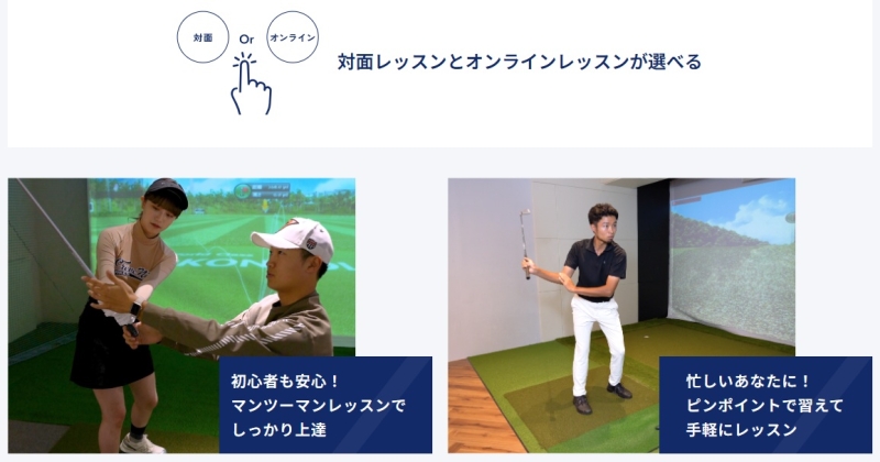 スマートゴルフでは、練習スタイルに合わせて対面レッスンとオンラインレッスンを選ぶことができます。