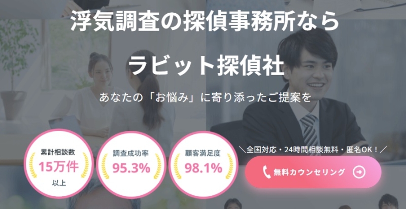 ラビット探偵社は、浮気・不倫調査を中心に全国対応でサービスを展開している探偵社です。