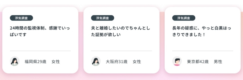 調査の進捗を随時共有してもらえたことで、「今どうなっているのか分からない」という不安がなかったという声が多く見られます。精神的な負担が軽減された点を評価する人が目立ちました。