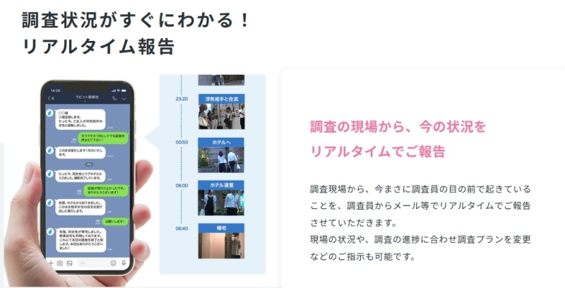 ラビット探偵社の大きな特徴のひとつが、調査中の状況を随時共有する“リアルタイム報告”です。