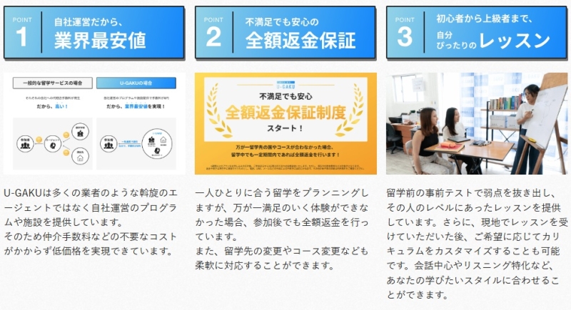 次のパートでは、U-GAKUが選ばれている具体的なポイントを整理し、他の留学サービスとの違いを詳しく見ていきます。
