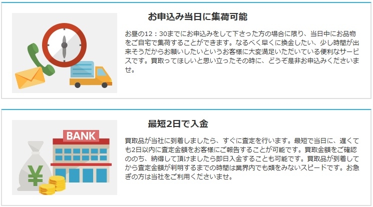 申し込み当日の集荷対応と最短入金