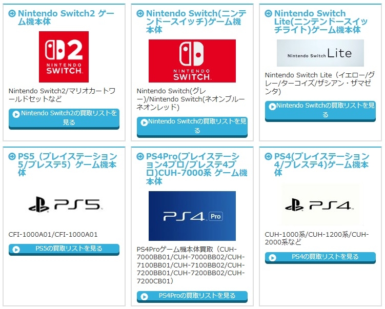 現行ハード・人気機種の買取