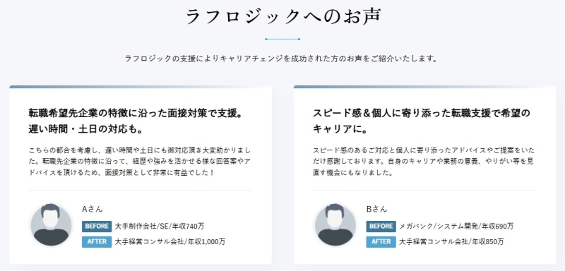 ラフロジックの評判を裏付けるのが、実際の転職成功事例です。