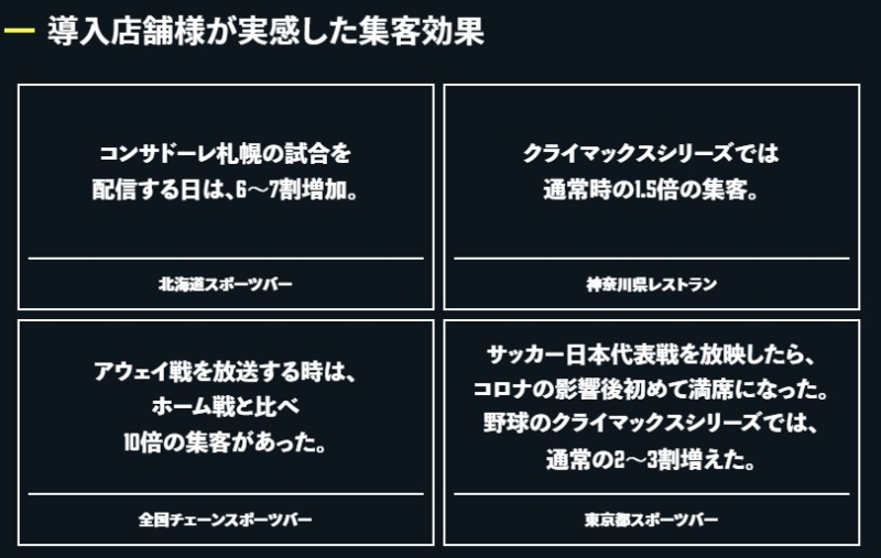 店舗でスポーツ観戦を提供できる法人向けサービス