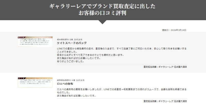 「すぐに売りたい」「安全に取引したい」というニーズの両方に対応しているため、初めてブランド品を売る方でも利用しやすい仕組みになっています。 このようにギャラリーレアは、専門性の高い査定と使いやすい買取方法を兼ね備えたサービスです。次のパートでは、実際に利用した人の口コミや評判をもとに、リアルな評価を詳しく見ていきます。