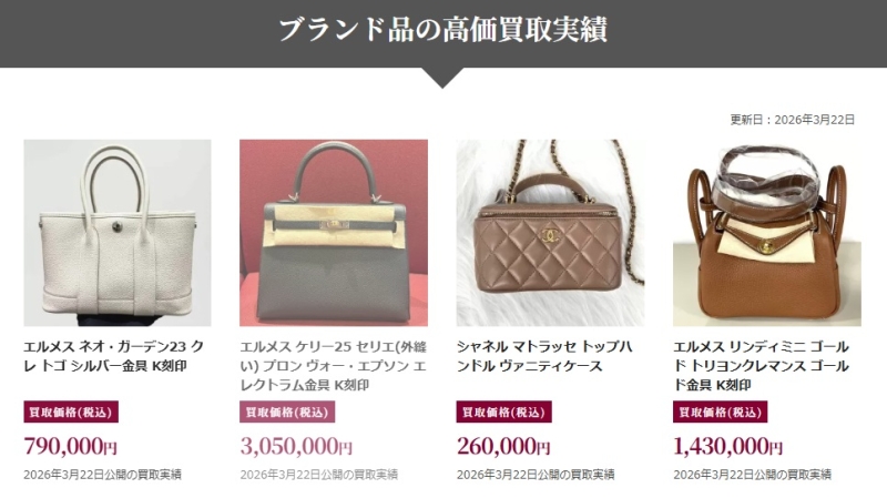 長年の実績を持つ専門店として知られており、ブランド品に特化した査定力の高さや、スピーディーな宅配買取が魅力とされています。