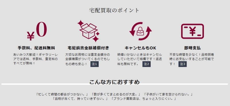 問い合わせや査定時の説明がわかりやすく、初めてでも不安なく利用できたという意見が目立ちます。 - 宅配買取がスムーズで手間がかからない