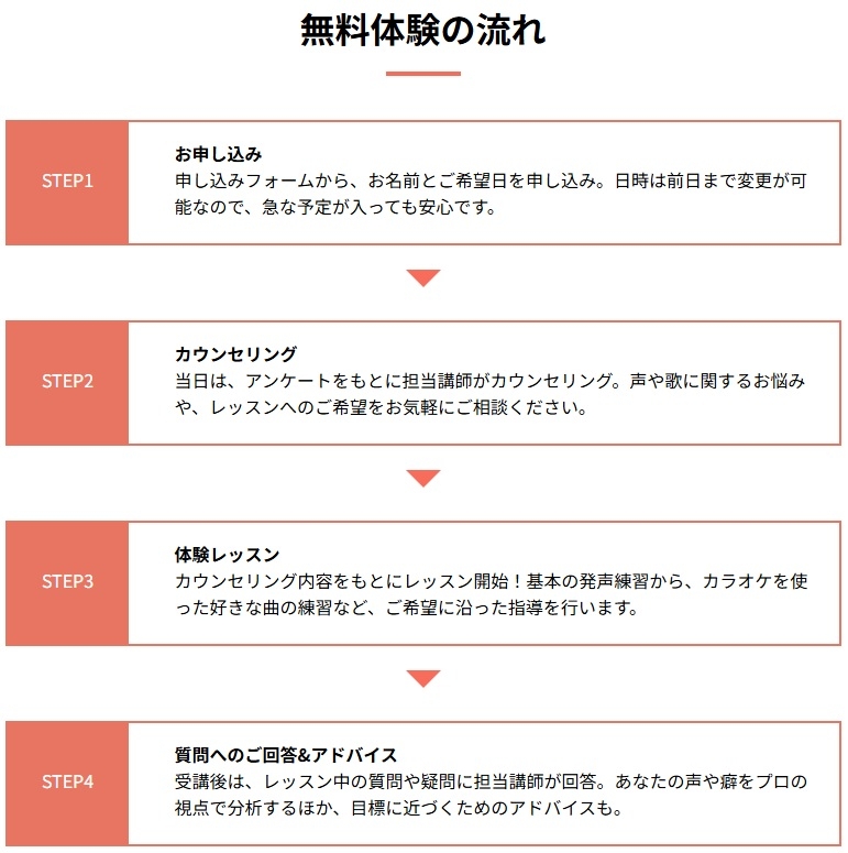 無料体験の流れはシンプルでわかりやすい