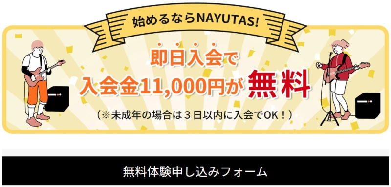 ボイトレは、実際に体験してみないとわからない部分が多いジャンルです。ナユタスでは無料体験が用意されているため、レッスンの雰囲気や講師との相性を事前に確認することができます。
