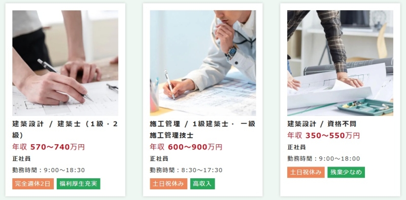建築転職の求人を見ると、単に給与が高いだけでなく、働き方にも配慮された案件が多い傾向があります。