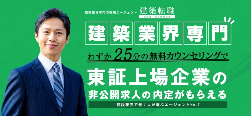そんな中で注目されているのが、建設業界に特化した転職エージェント「建築転職」です。現場経験や専門知識を持つ担当者に相談できる点が特徴で、一般的なエージェントとは違った視点で転職活動をサポートしてくれます。