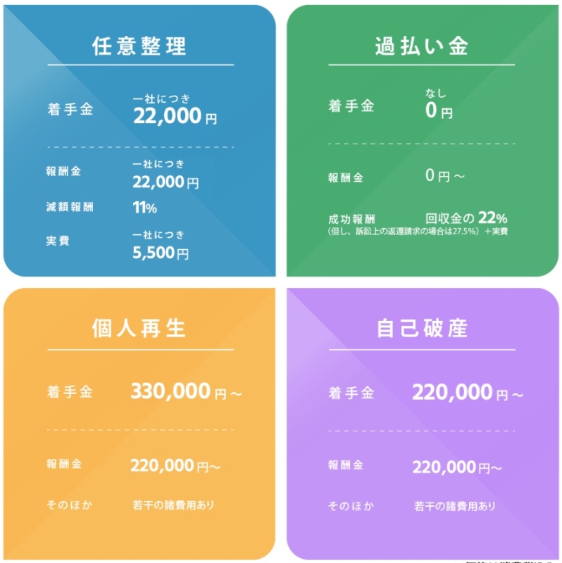 個人再生や自己破産は、手続きの内容が複雑になるため、費用もそれに応じた設定となっています。