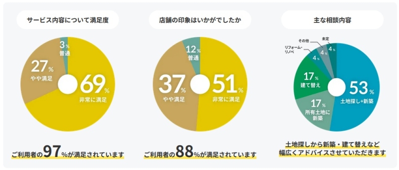 何も分からない状態でも丁寧に説明してもらえたという声が多く、初心者でも安心して利用できる点が評価されています。 - 自分に合った住宅会社を紹介してもらえた