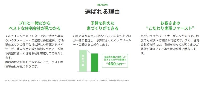 くふうイエタテカウンターは、相談から住宅会社の紹介まですべて無料で利用できるのが特徴です。