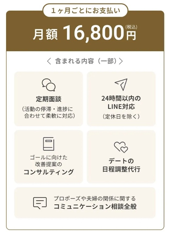 また、活動に必要なサポートがあらかじめ含まれているため、追加費用を気にせず婚活を進めやすい点も特徴です。