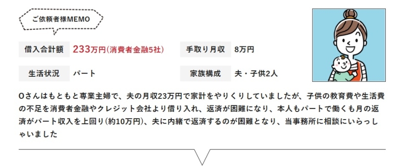 収入の減少や生活環境の変化によって、借金の返済が難しくなるケースもあります。この事例では、生活費や教育費などの負担が重なり、借入が増加していった結果、返済が困難な状況に陥っていました。