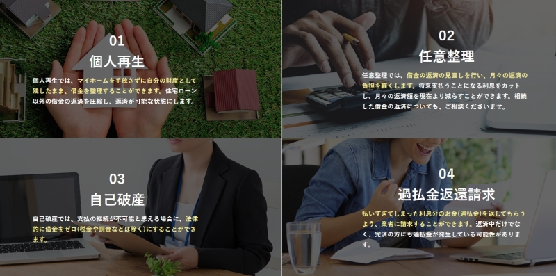 - 個人再生:借金を大幅に減額し、分割で返済していく方法