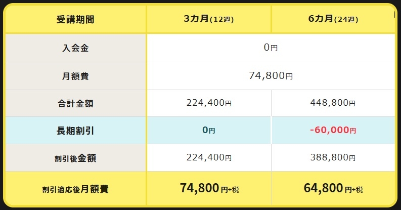 - 受講期間:3ヶ月・6ヶ月など