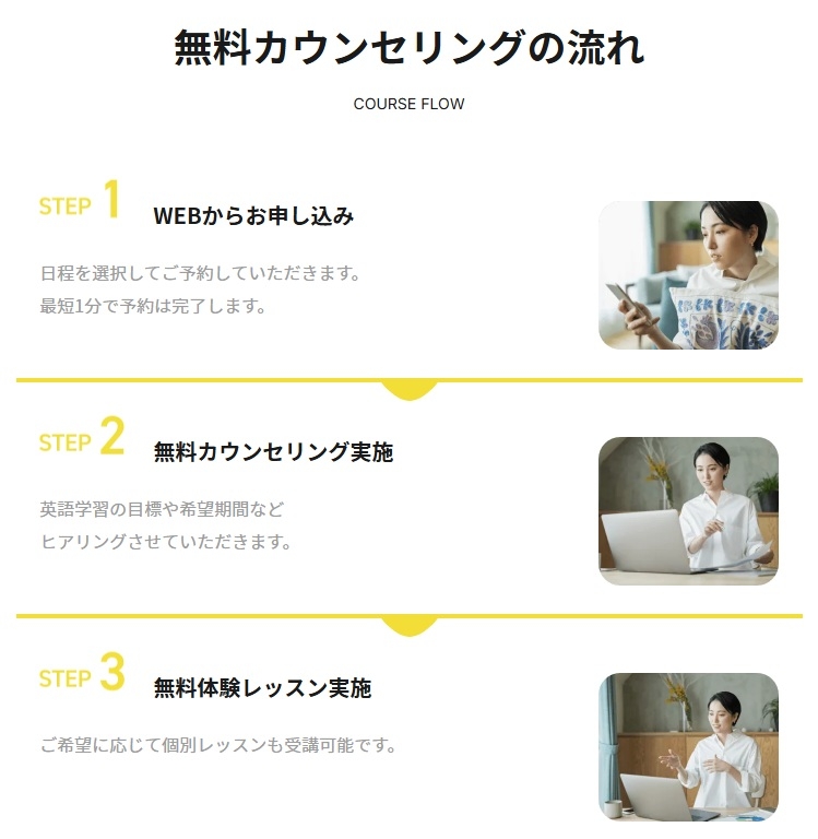 無料カウンセリングでは、現在の英語力や目標に合わせて、最適な学習プランを提案してもらえます。
