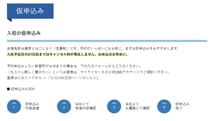 合宿免許は人気の時期になると予約が集中し、条件の良いプランから埋まっていきます。検討している段階でも、まずは仮申込みをしておくことで選択肢を確保しやすくなります。