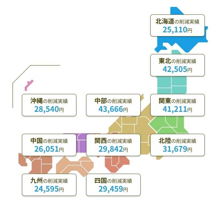 - 平均的な削減額は年間数万円前後とされています
