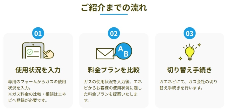 また、エネピは提携している複数のガス会社の中から条件に合う会社を紹介してくれるため、自分で一社ずつ調べる必要がありません。