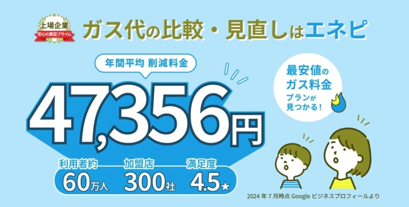 ガス料金の削減額は利用状況によって異なりますが、一定の節約効果が期待できます。