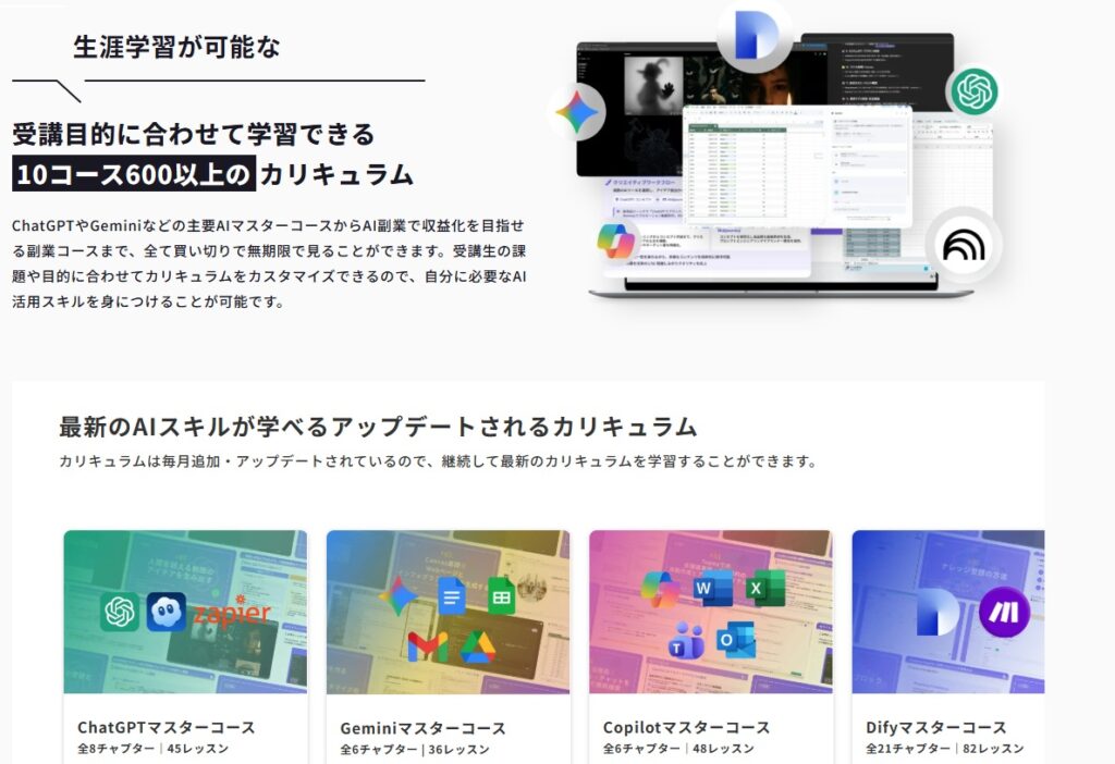 • 最新のAIツールや技術に合わせてカリキュラムが更新される
