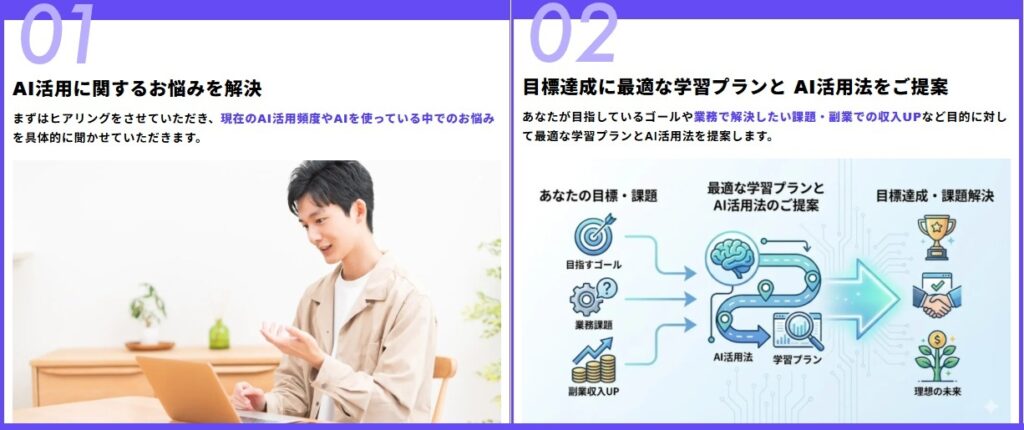 • AIライティングや画像生成など、副業案件に直結しやすいスキルが学べる