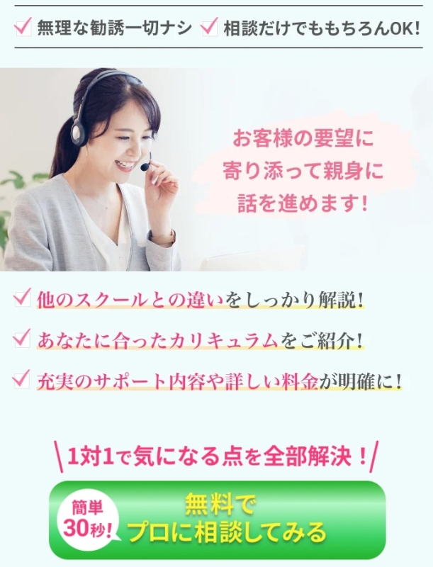 いきなり受講を決める必要はなく、まずは相談してみるだけでも問題ありません。