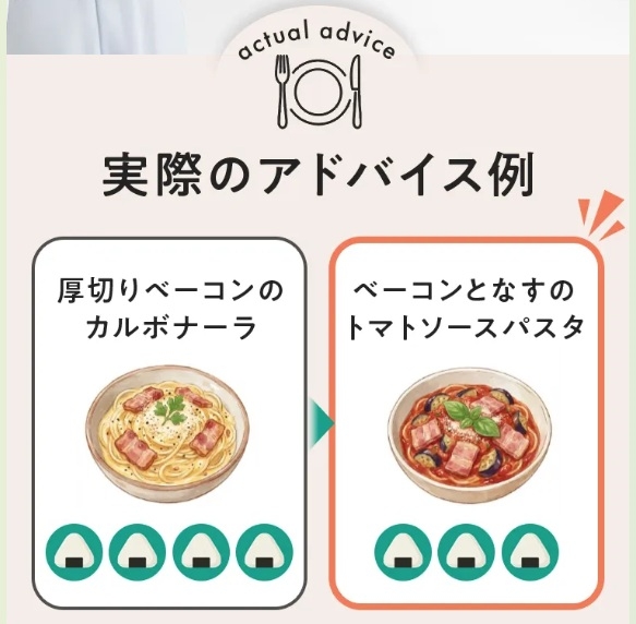 - 外食や日常生活に合わせたアドバイスが受けられる