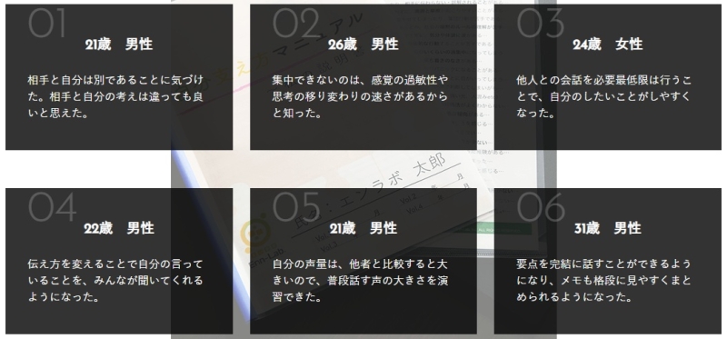 これまで「なぜうまくいかなかったのか」を言葉にできずにいたが、ワークを通じて自分の傾向が分かり、気持ちが楽になったという声が見られます。