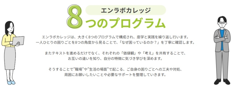 エンラボカレッジの自立訓練は、8つのプログラムを軸に構成されています。